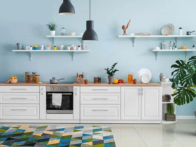 آبی حس آرامش و نظم ایجاد میکند، زرد فضا را گرم و پرانرژی میسازد، و سبز باعث آرامش ذهن در هنگام آشپزی میشود.