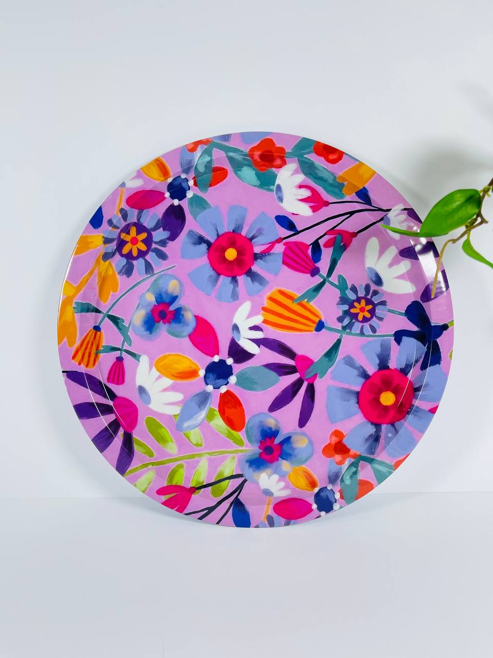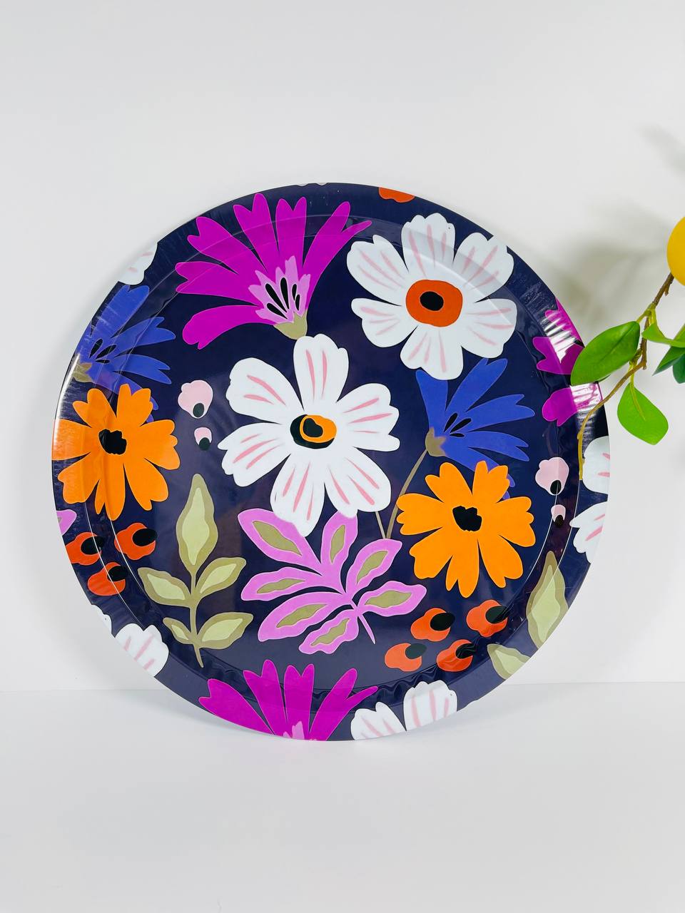 🛒 با خرید سینی فلزی دایرهای طرح گل قطر 35 سانتیمتر، زیبایی و نظم را به میز پذیرایی خود بیاورید.