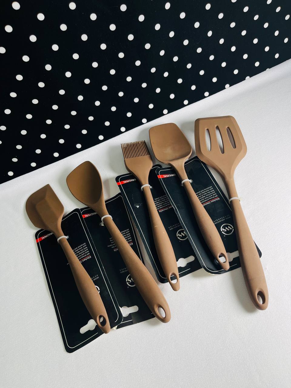 ست تمام سیلیکون 5 عددی کفگیر و ملاقه و فرچه و لیسک و برگردان WS