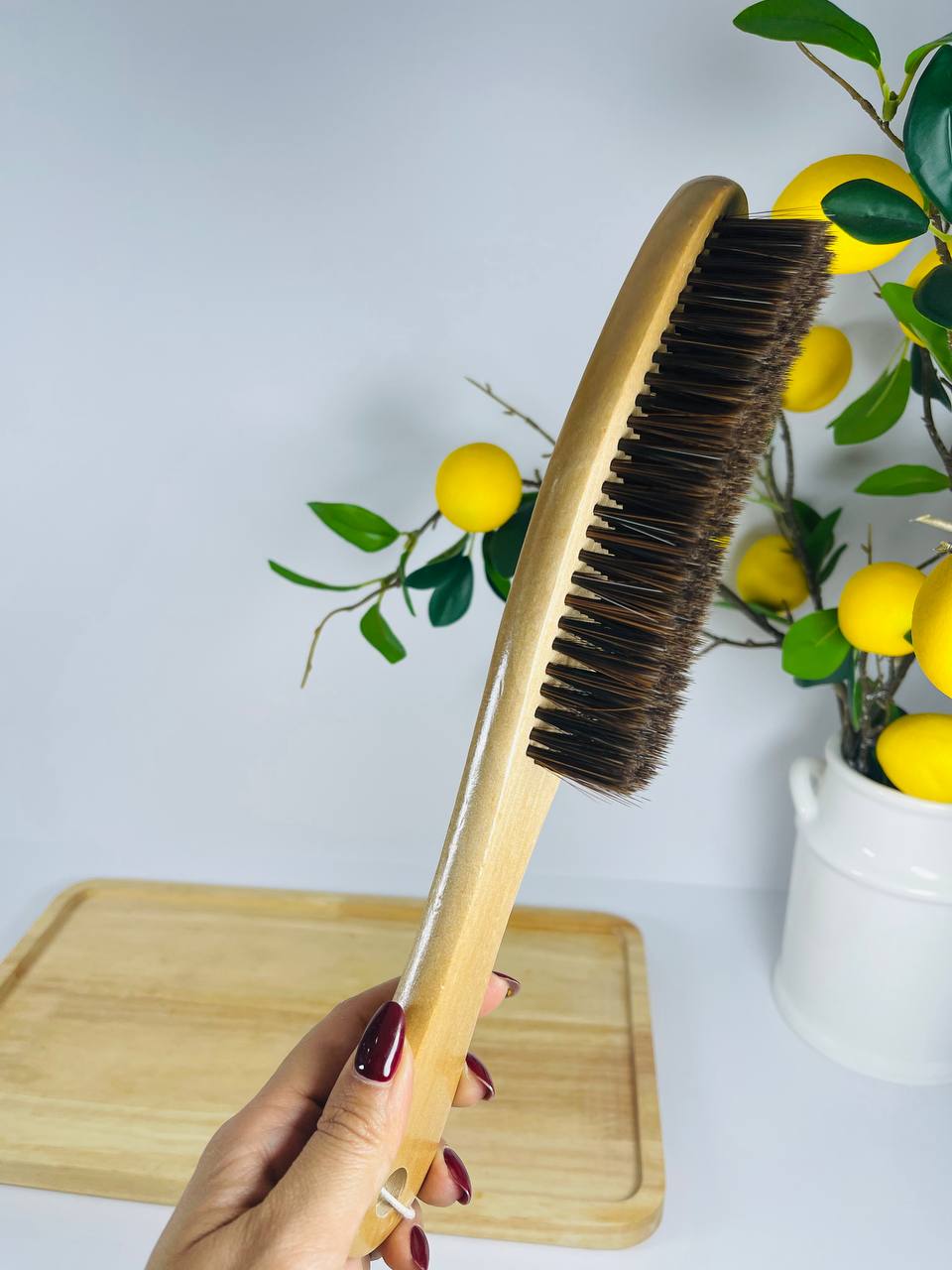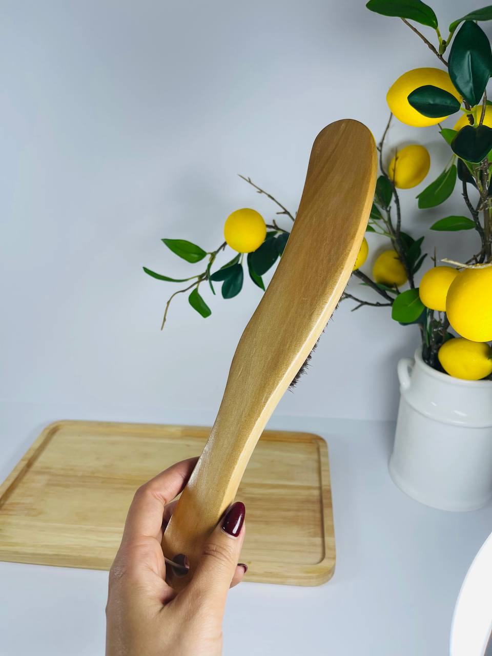 “برس چوبی با الیاف طبیعی برای تمیزکاری با طراحی ساده و کاربردی.”