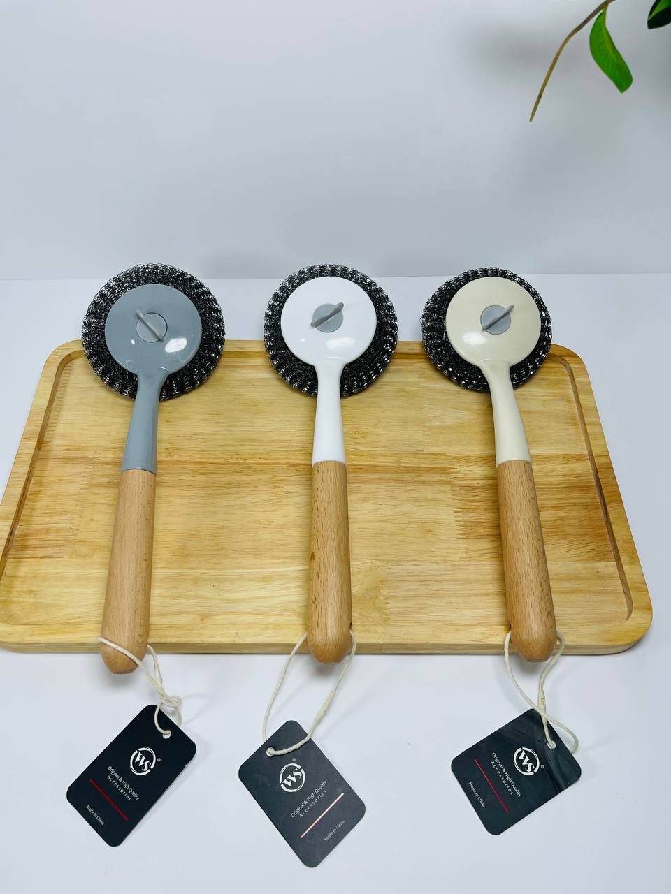فرچه آشپزخانه سیم دار وارداتی ws مناسب شستشوی قابلمه و سینک دسته بامبو